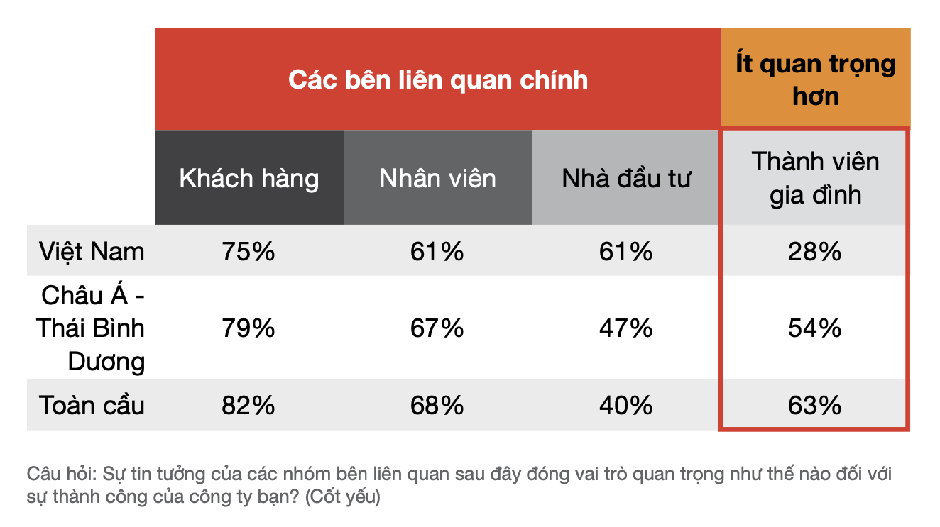 Phần lớn doanh nghiệp gia đình tại Việt Nam không chú trọng vào niềm tin giữa thành viên trong gia đình. Nguồn: Khảo sát của PWC Việt Nam.