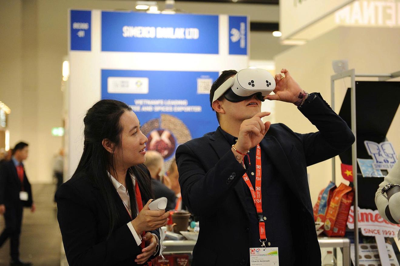 Tại Hội chợ quốc tế Anuga 2025 (Đức), Simexco Daklak ra mắt trải nghiệm VR 360, giúp khách hàng khám phá chân thực quy trình sản xuất và hệ thống máy móc chế biến tại nhà máy, tạo sự tin cậy tuyệt đối. Ảnh: SMC