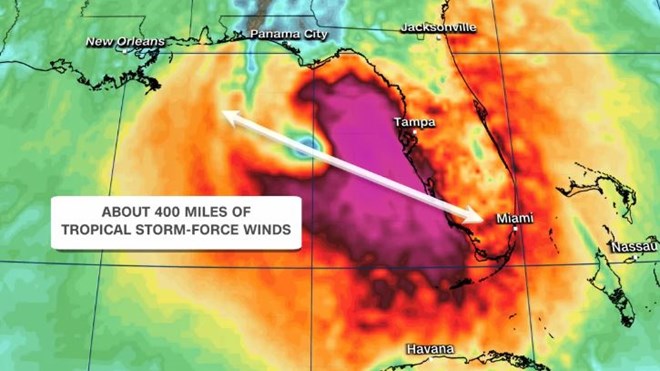 "Tâm bão Helene dự báo di chuyển qua vùng biển tây bắc Caribe trong đêm 24.9, sau đó di chuyển qua phía đông Vịnh Mexico vào 25 và 26.9 với khả năng đến vùng duyên hải vịnh Mexico của Florida vào cuối ngày 26.9" - NHC nêu trong bản tin dự báo bão mới nhất về bão số 9.