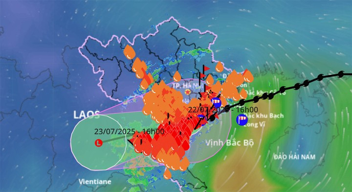 Theo Trung tâm khí tượng thủy văn quốc gia, đêm qua (22/7), áp thấp nhiệt đới (suy yếu từ cơn bão Wipha) đã suy yếu thành một vùng áp thấp trên khu vực biên giới Việt Nam - Lào.