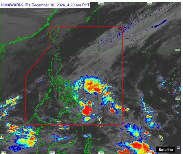 Áp thấp nhiệt đới gần Biển Đông Querubin sáng 18.12. Ảnh: PAGASA