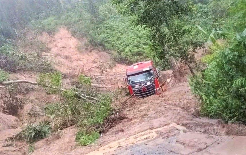 Trên ĐT606, nối từ xã A Vương lên cửa khẩu phụ Tây Giang, mưa lớn làm tái diễn hàng loạt sạt lở taluy dương và taluy âm. 6 vị trí bị tắc đường. Tại Km25+600 (xã Tây Giang), nền đường bị khoét hàm ếch nghiêm trọng, chỉ còn đủ cho xe máy qua lại.