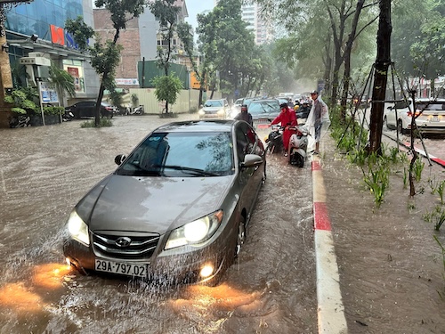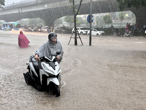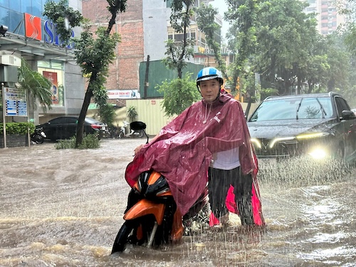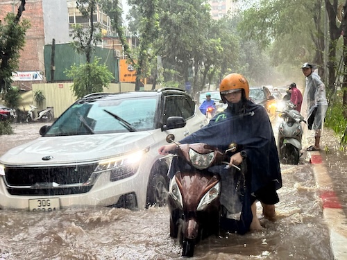 Mưa lớn, các tuyến phố Hà Nội thành sông, người dân ngâm mình trong nước