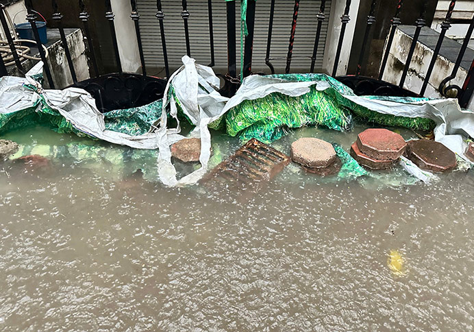 8h15: Người dân đóng cửa, quây tôn chặn rác trôi vào nhà