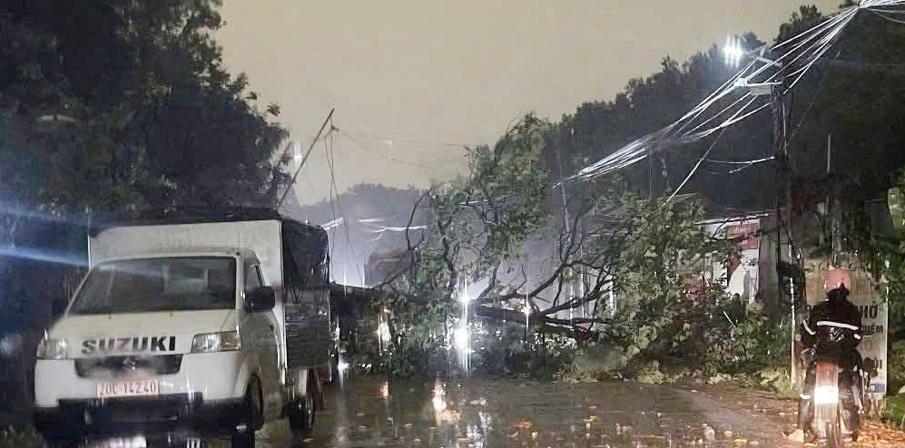 Trận mưa dông khiến một số cây xanh bị gãy đổ trên địa bàn tỉnh Thái Nguyên. Ảnh: BTN