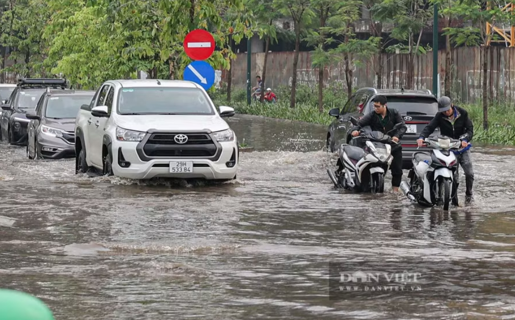| Trận mưa đá kèm mưa lớn trút xuống Hà Nội từ đêm đến sáng 30/3 khiến nhiều tuyến phố rơi vào tình trạng ngập úng. Ảnh: INT |