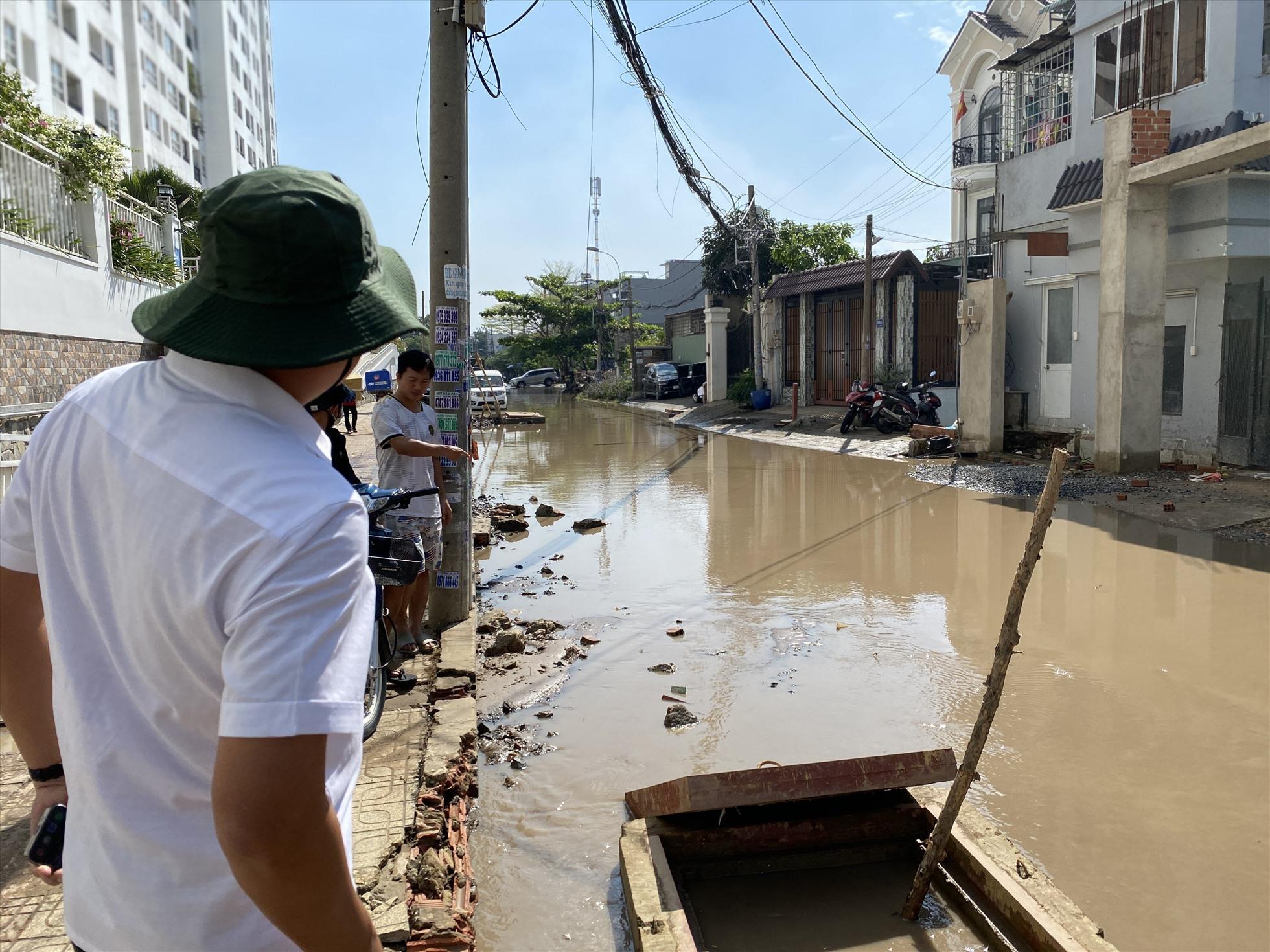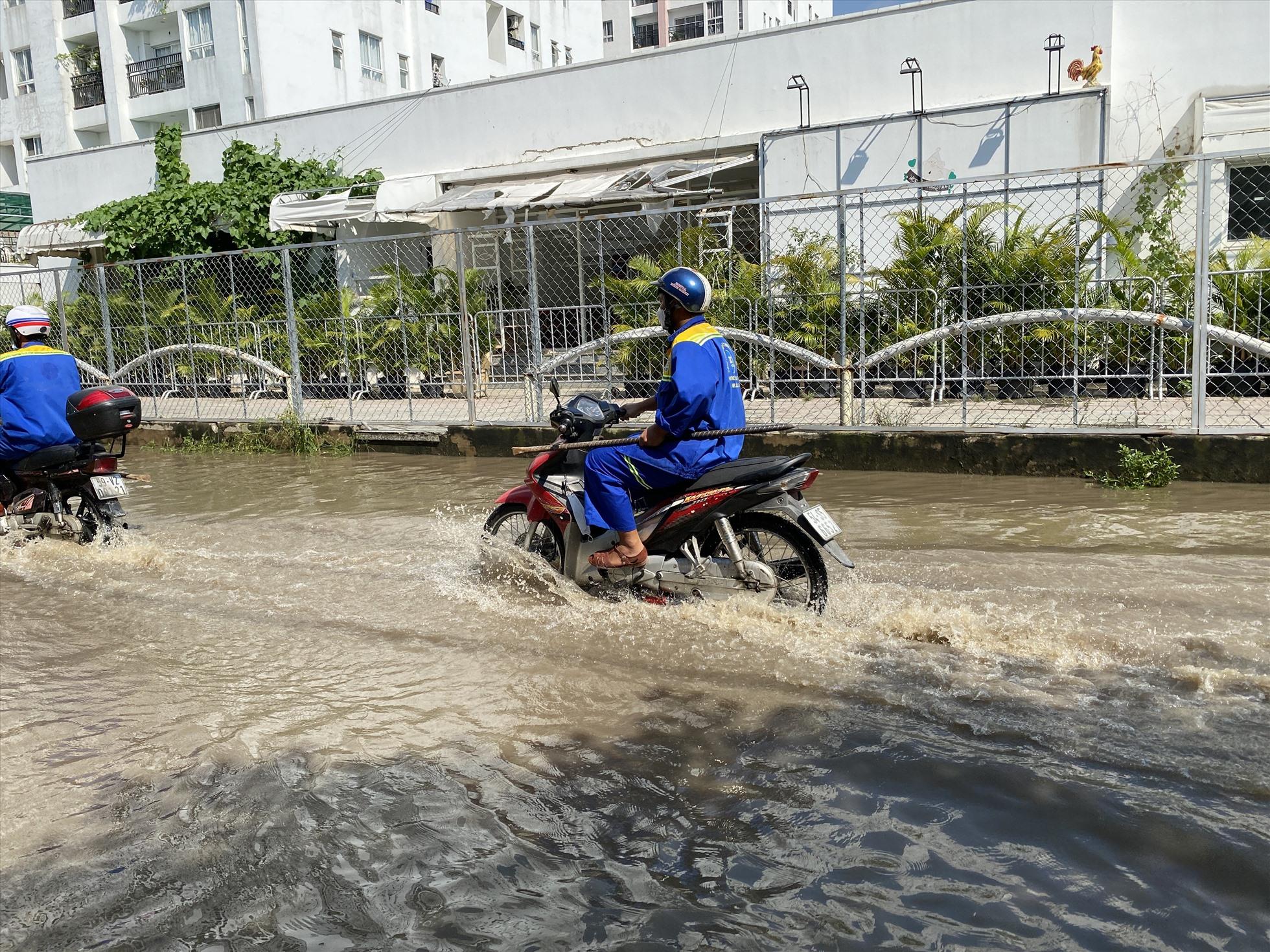 TPHCM: Đường khu dân cư ngập nước giữa trời nắng