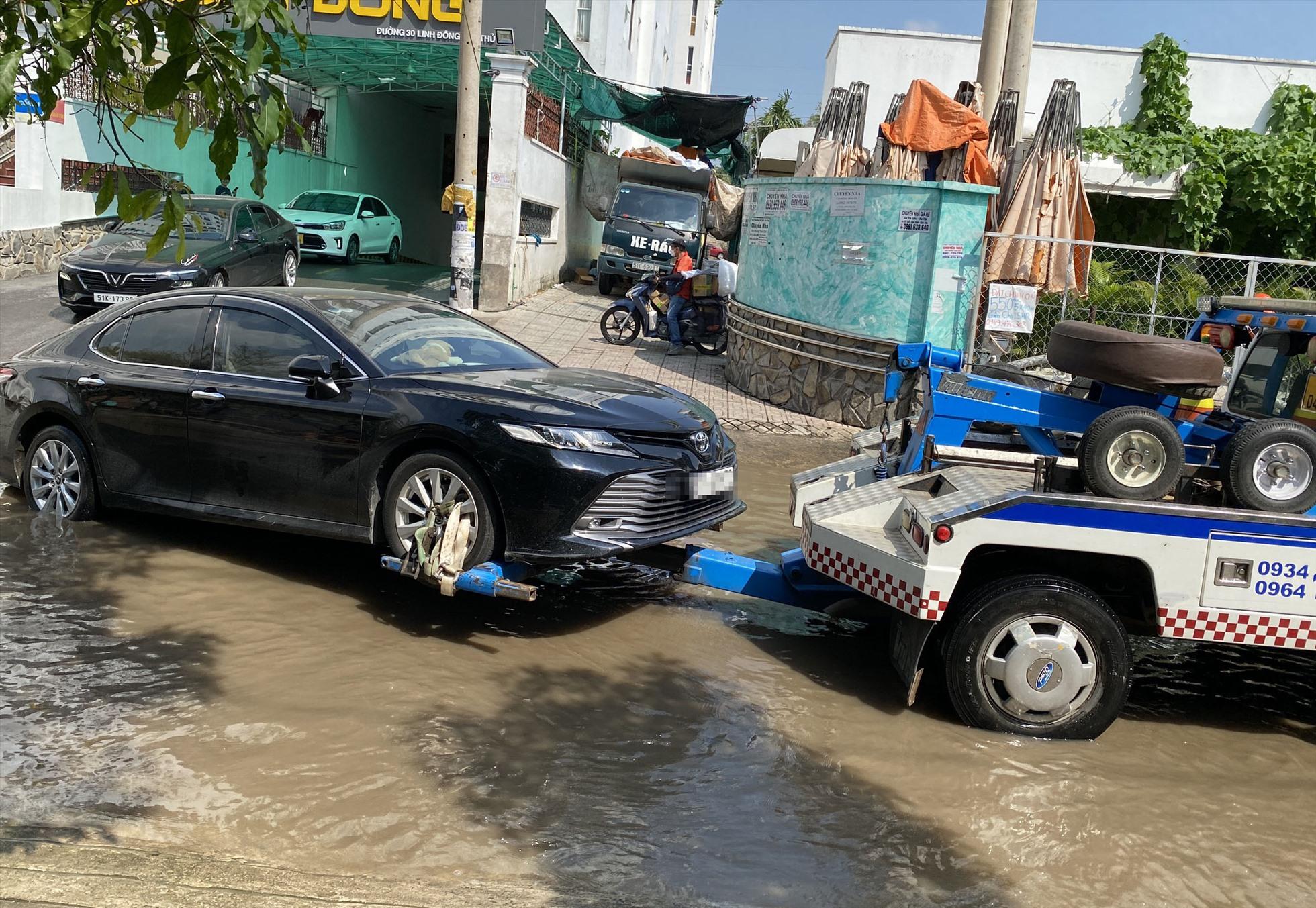 Một xe ôtô gặp sự cố nước vào phải nhờ đến cứu hộ trong sáng ngày 30.11.