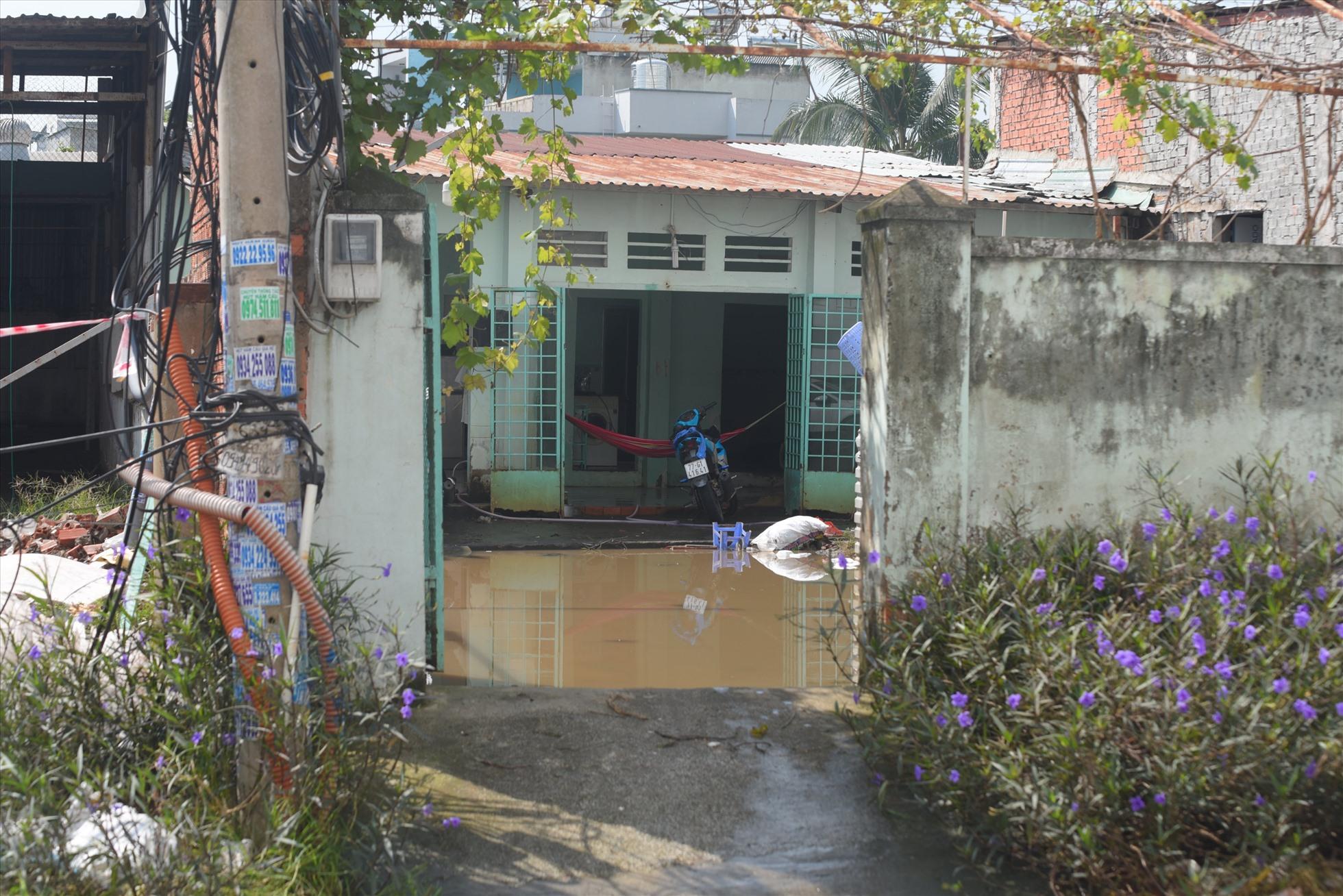 Một nhà dân có nền thấp nước ngập vào tận sân nhà.