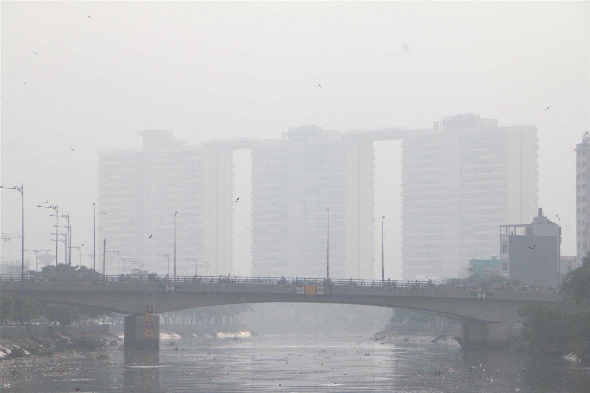 Sương mù dày đặc che khuất nhiều toà nhà ở TPHCM. Ảnh: Nguyên Chân