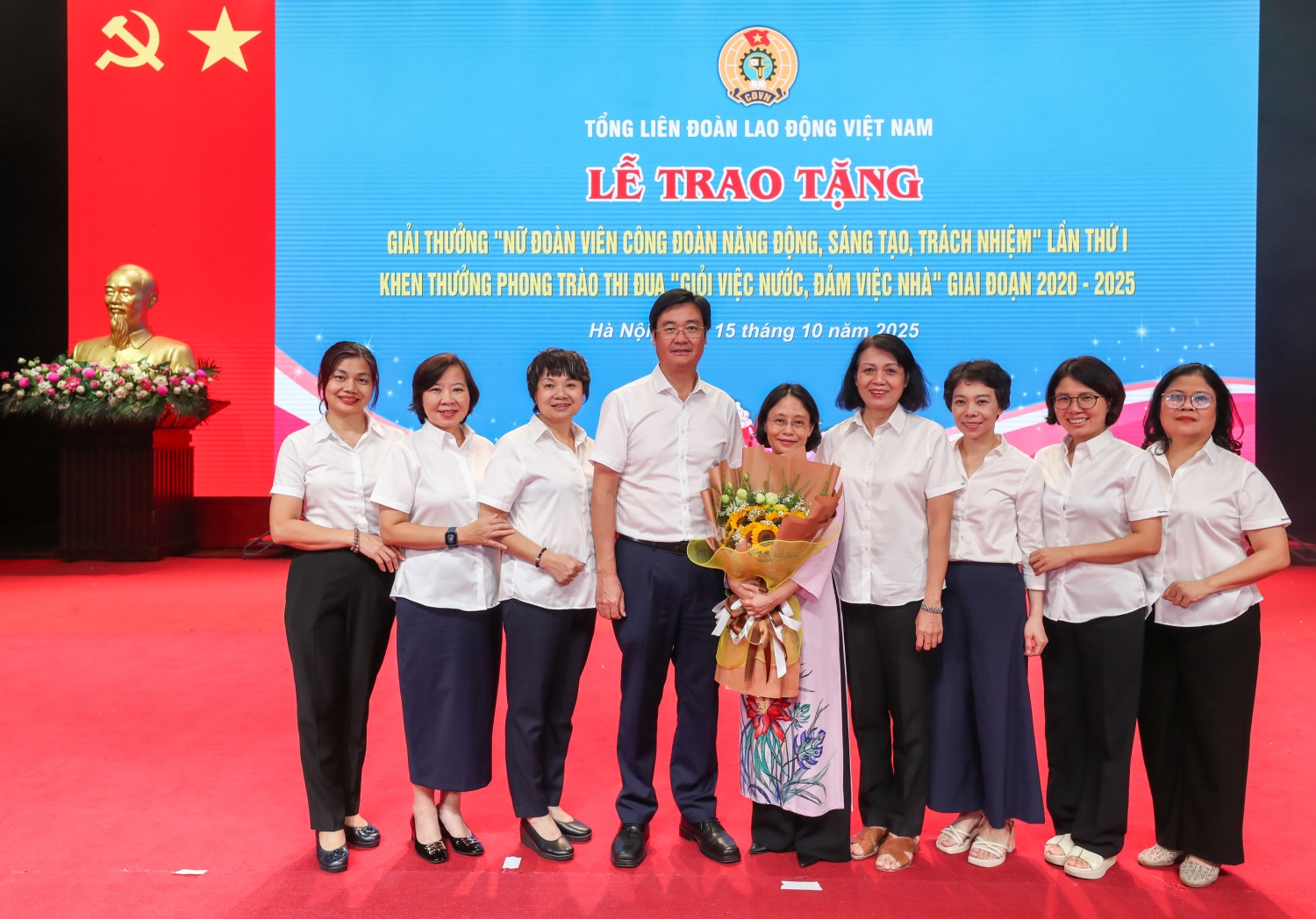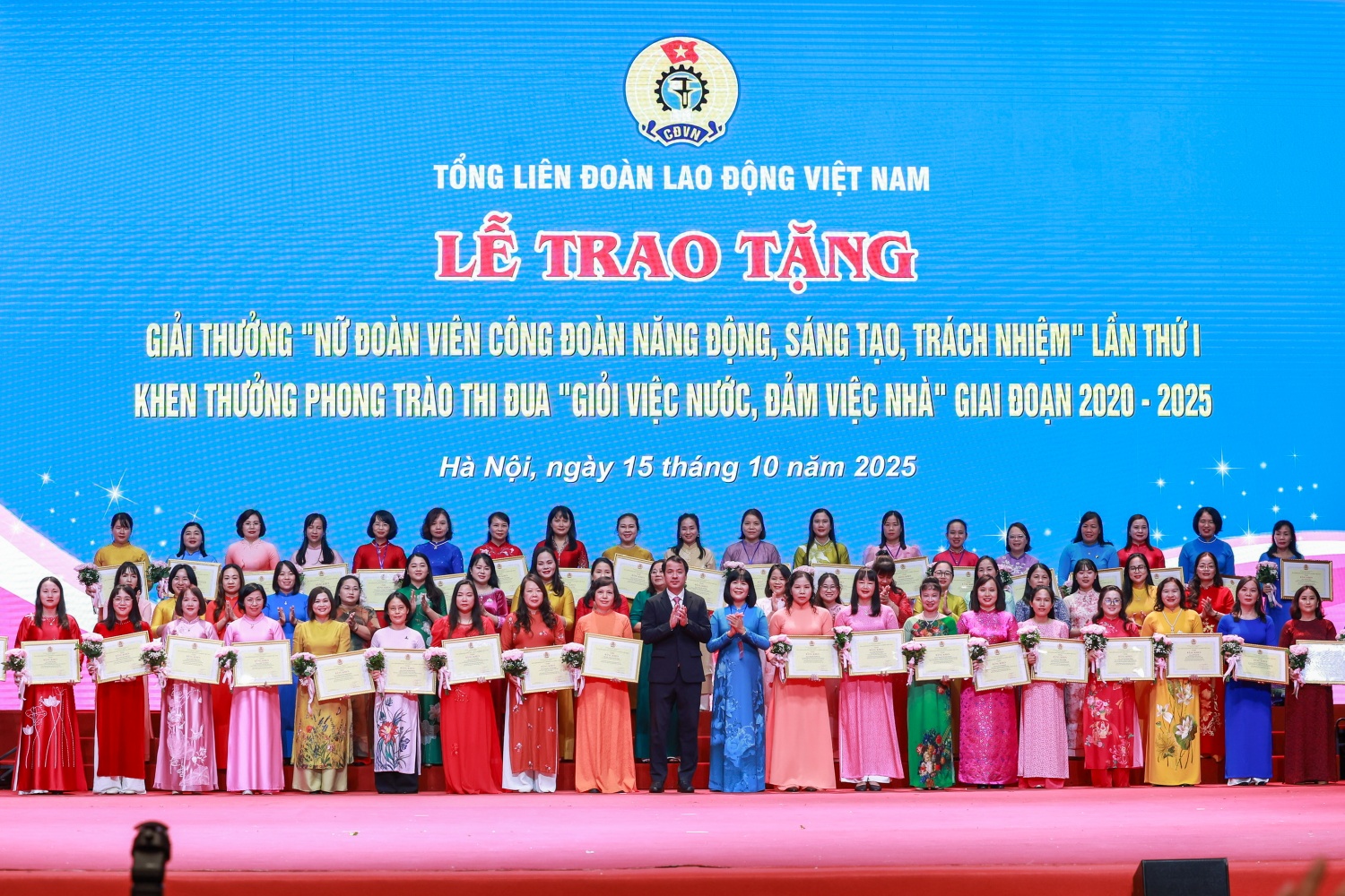Tối ngày 15/10/2025 tại Cung Văn hóa Lao động Hữu nghị Việt - Xô, Tổng Liên đoàn Lao động Việt Nam long trọng tổ chức Lễ trao tặng Giải thưởng “Nữ đoàn viên Công đoàn năng động, sáng tạo, trách nhiệm” lần thứ I và sơ kết, khen thưởng phong trào thi đua “Giỏi việc nước, đảm việc nhà” giai đoạn 2020-2025.