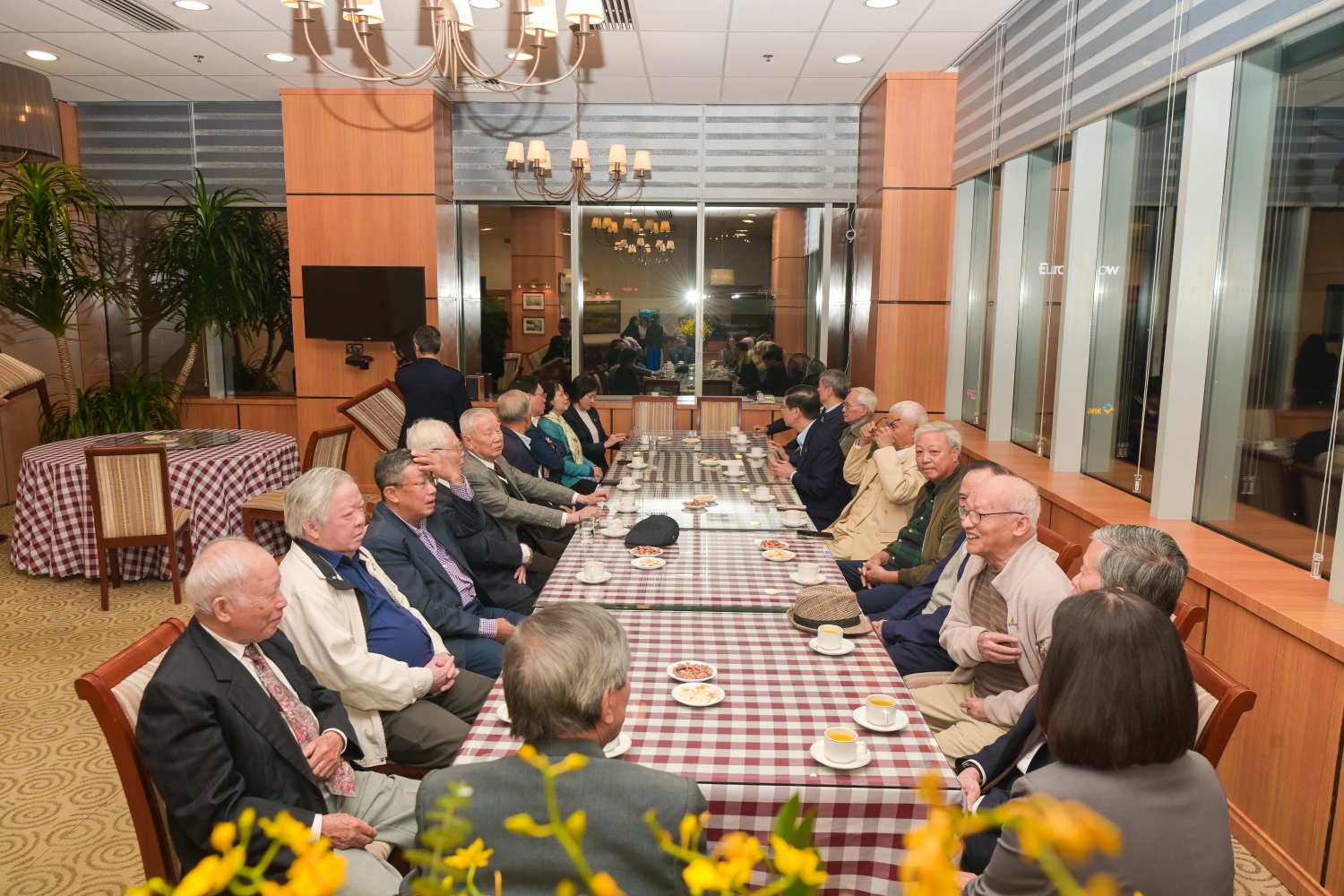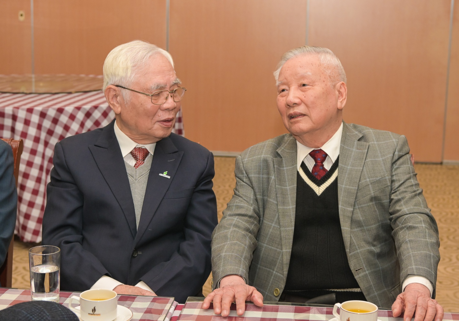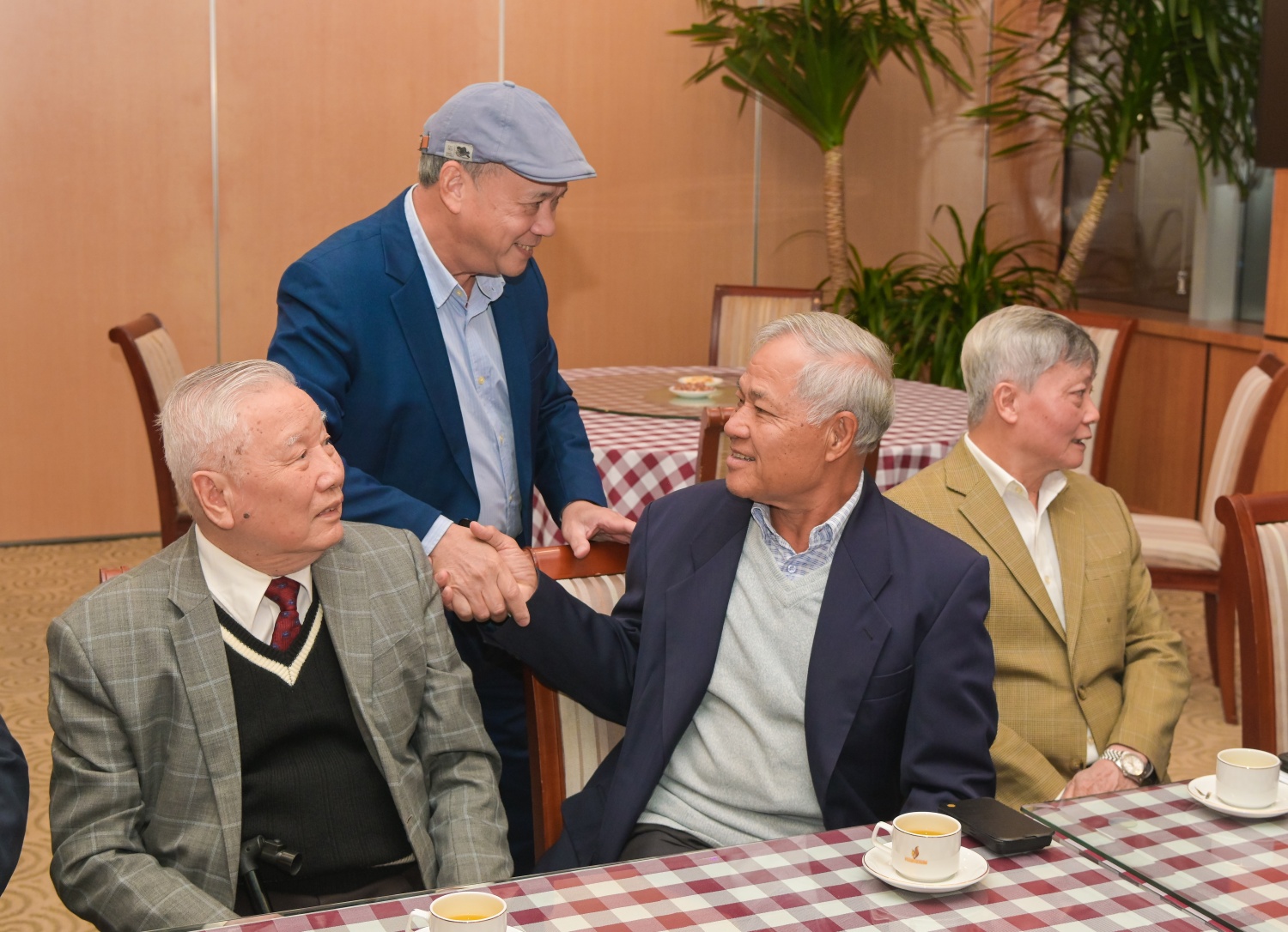 | Đồng chí Lê Mạnh Hùng thăm hỏi các nguyên lãnh đạo các thời kỳ của Tập đoàn. |