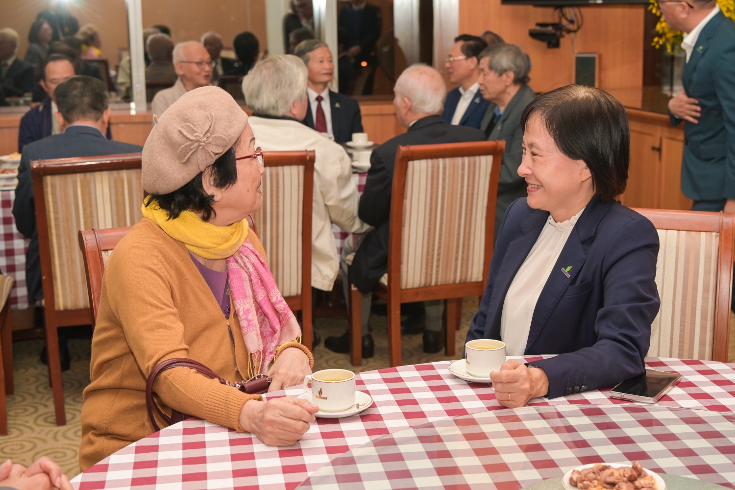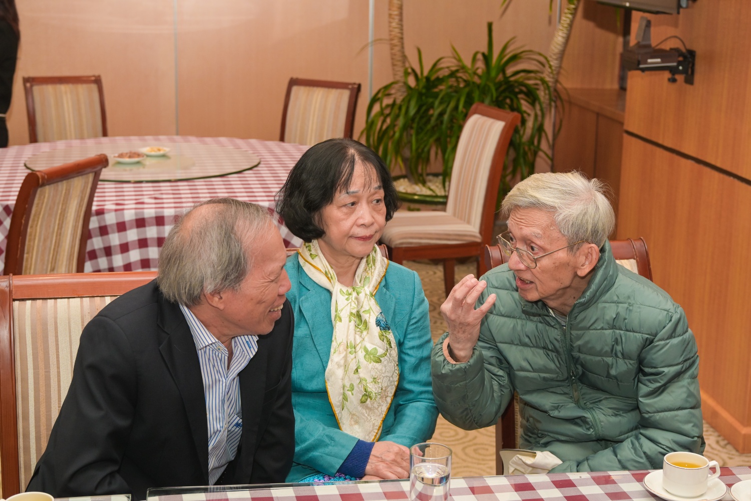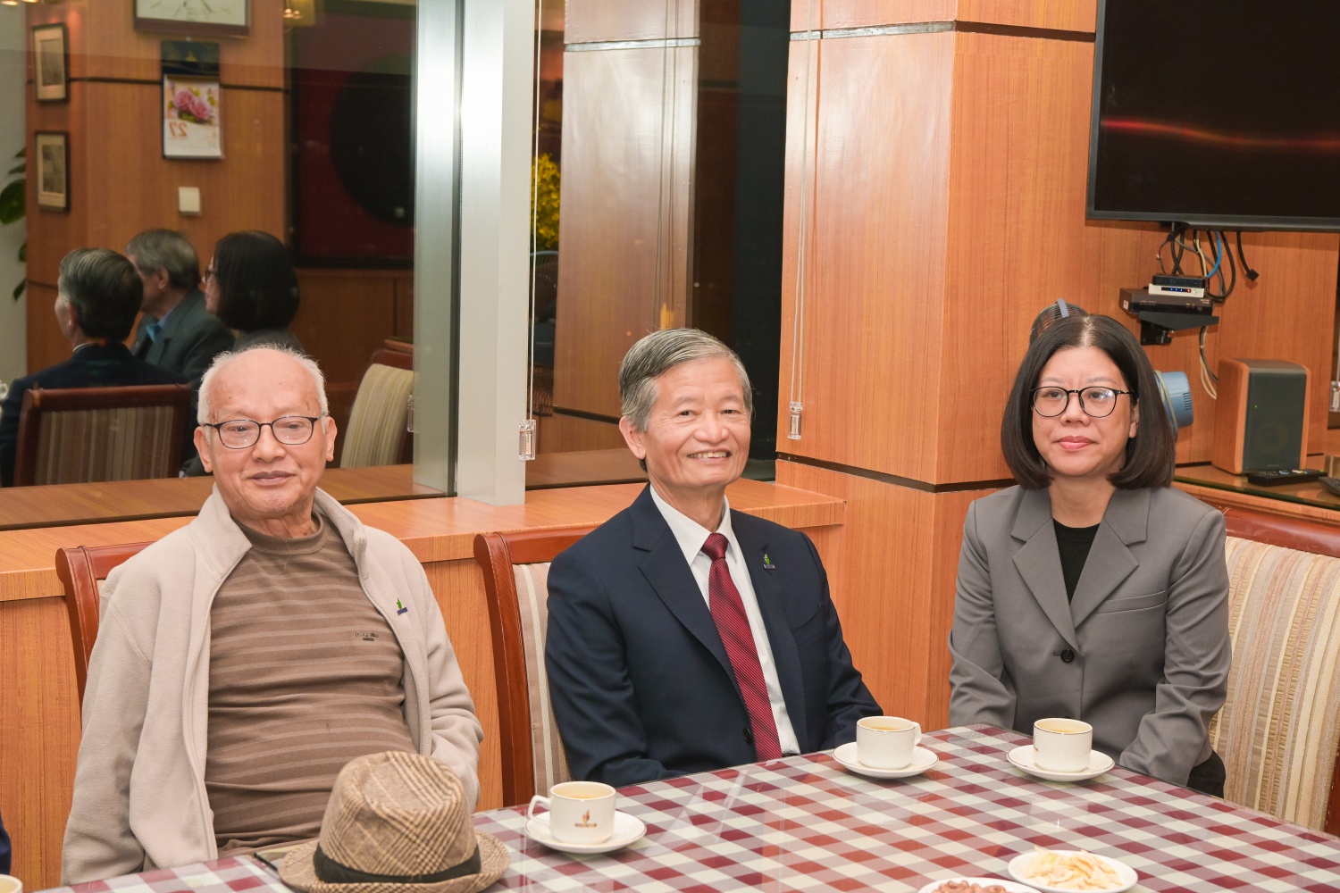 | Đồng chí Lê Mạnh Hùng thăm hỏi các nguyên lãnh đạo các thời kỳ của Tập đoàn. |