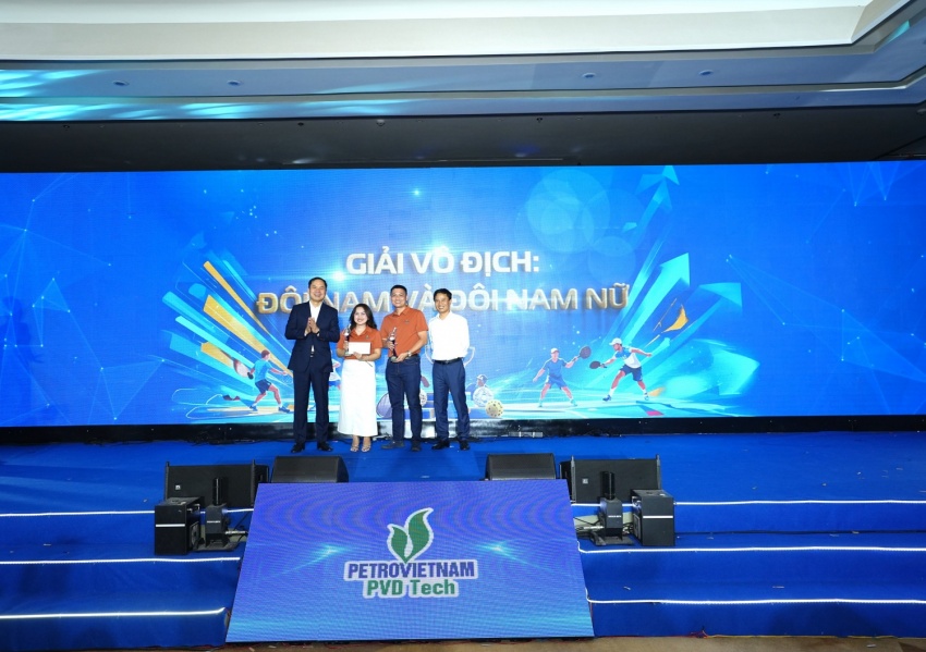 | Lãnh đạo PVD Tech trao giải Pickleball cho CBCNV đạt giải. |