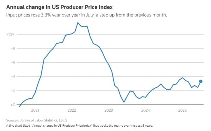 Thị trường chứng khoán toàn cầu ngày 14/8 (giờ Mỹ) ghi nhận diễn biến trái chiều sau khi Mỹ công bố báo cáo chỉ số giá sản xuất (PPI) tháng 7 tăng mạnh nhất trong 3 năm. Cú bật bất ngờ của PPI — chủ yếu do giá hàng hóa và dịch vụ đồng loạt leo thang — đã làm dấy lên lo ngại lạm phát sẽ quay trở lại, qua đó thu hẹp kỳ vọng về mức độ nới lỏng chính sách tiền tệ của Cục Dự trữ Liên bang Mỹ (FED).