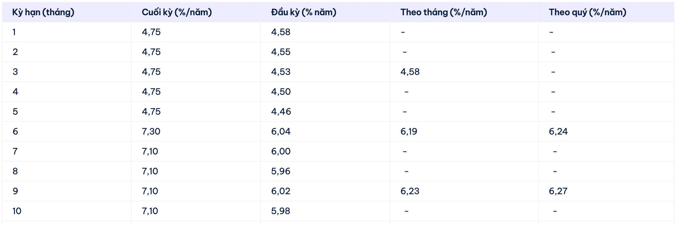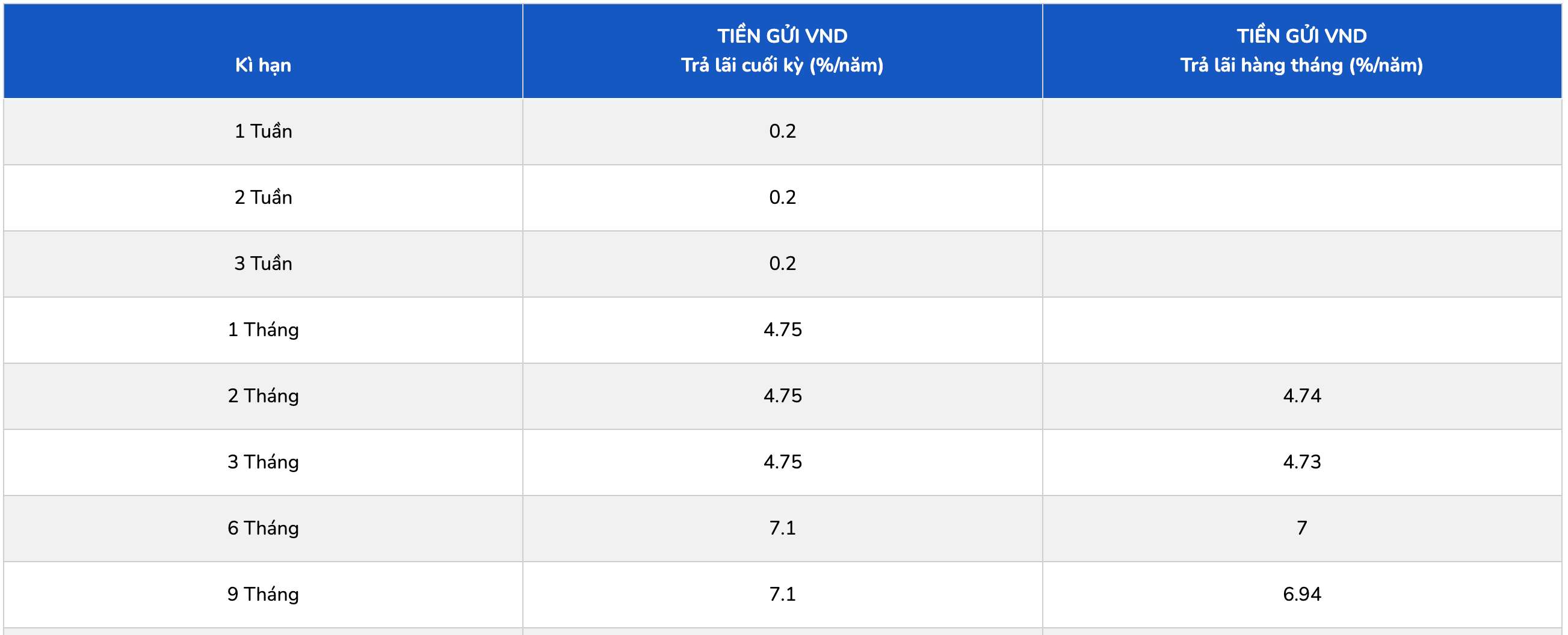 * Thông tin về lãi suất chỉ mang tính chất tham khảo và có thể thay đổi trong từng thời kỳ. Vui lòng liên hệ điểm giao dịch ngân hàng gần nhất hoặc hotline để được tư vấn cụ thể.