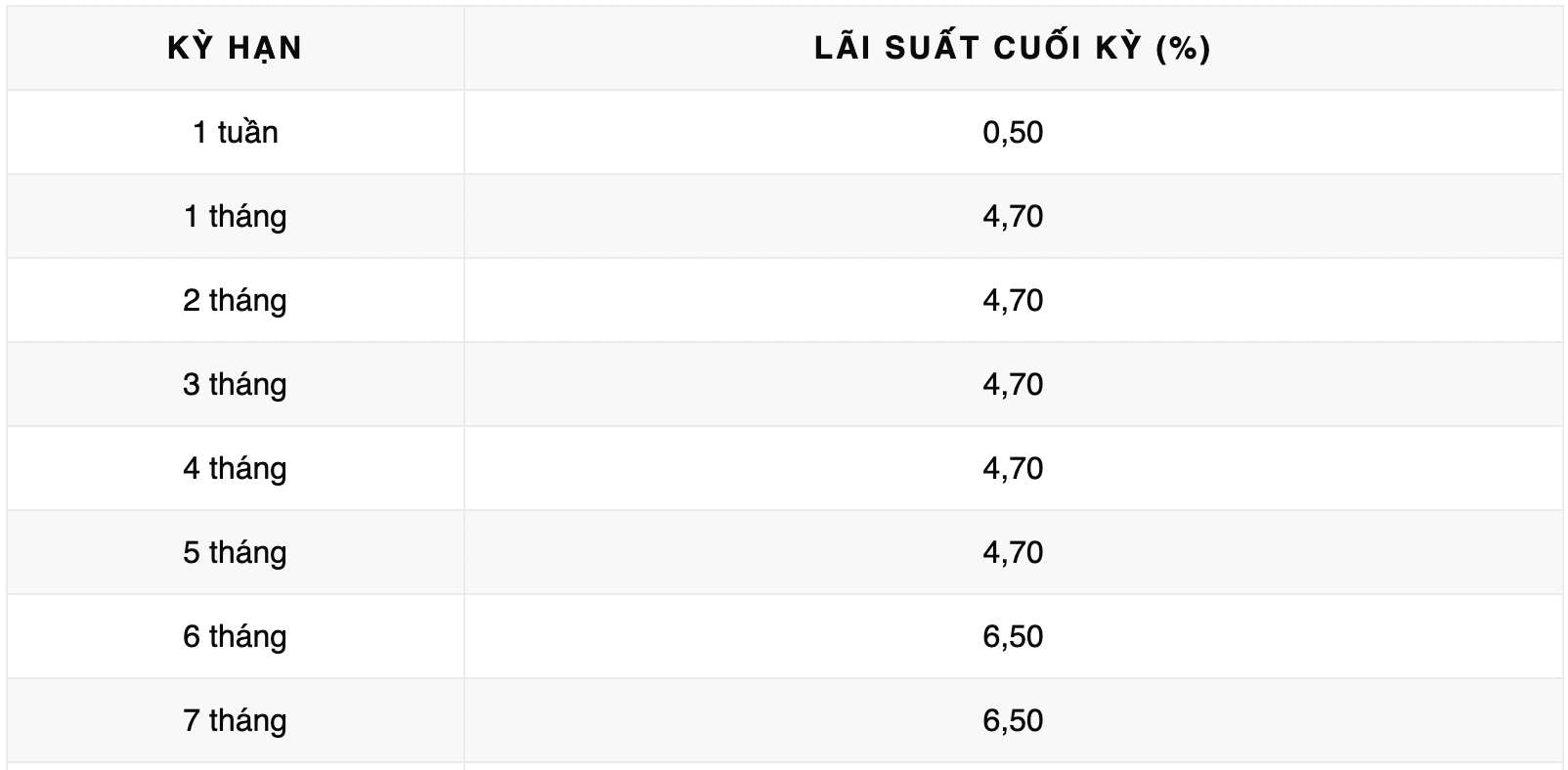 Vikki Bank đang niêm yết lãi suất cao nhất kỳ hạn 12 tháng ở mức 6,6% khi khách hàng cá nhân gửi tiền online, lĩnh lãi cuối kỳ. Hiện Vikki Bank đang niêm yết lãi suất cao nhất ở mức 6,7%/năm ở kỳ hạn 13 tháng.