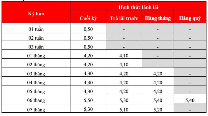 * Thông tin về lãi suất chỉ mang tính chất tham khảo và có thể thay đổi trong từng thời kì. Vui lòng liên hệ điểm giao dịch ngân hàng gần nhất hoặc hotline để được tư vấn cụ thể.