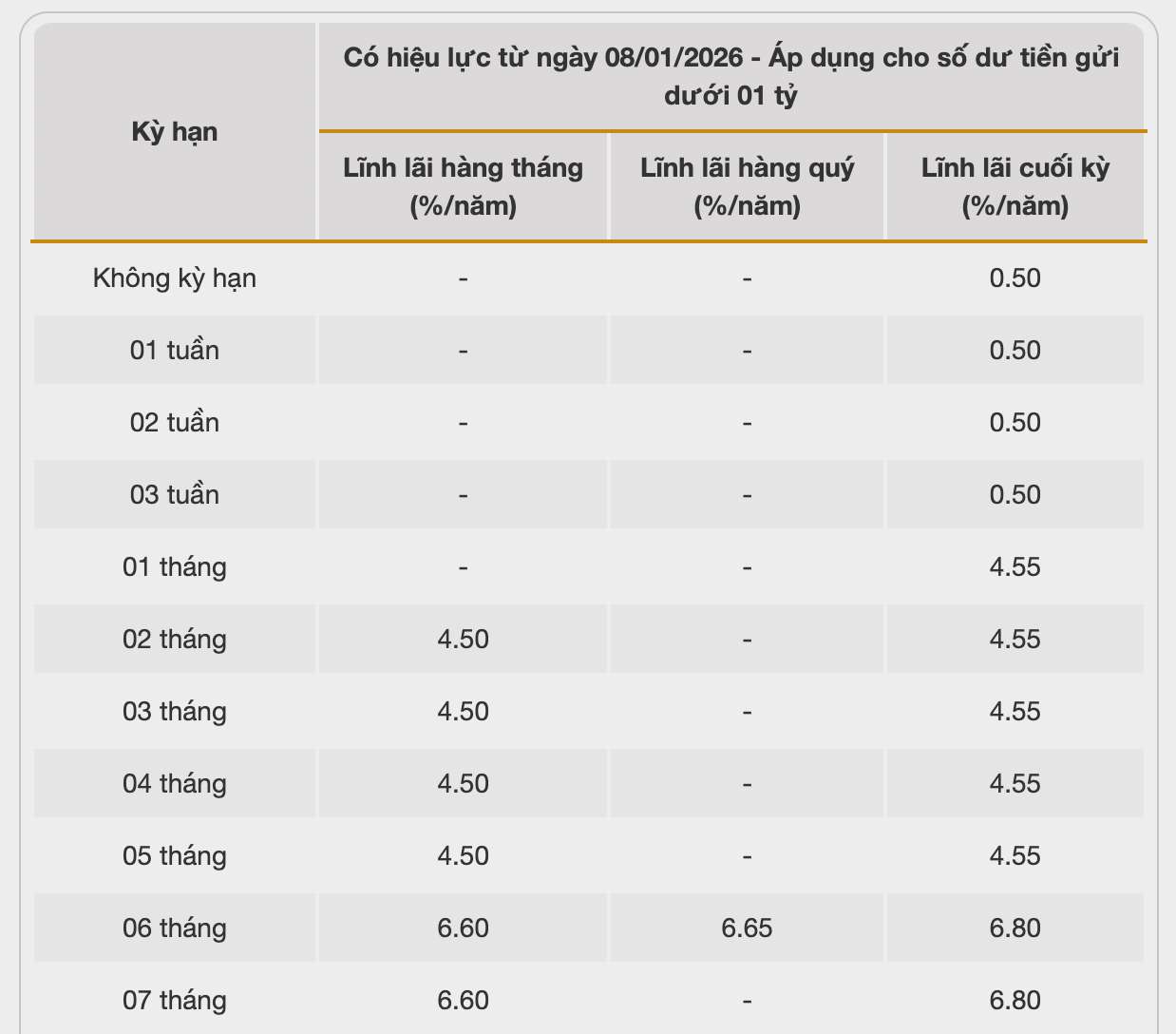 Lãi suất tiết kiệm 6 tháng trong hệ thống ngân hàng đang niêm yết cao nhất ở mức 7,3%/năm.