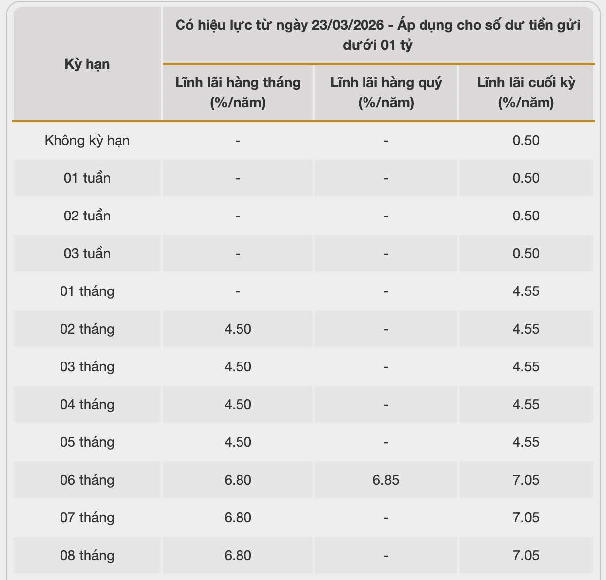 * Thông tin về lãi suất chỉ mang tính chất tham khảo và có thể thay đổi trong từng thời kỳ. Vui lòng liên hệ điểm giao dịch ngân hàng gần nhất hoặc hotline để được tư vấn cụ thể.