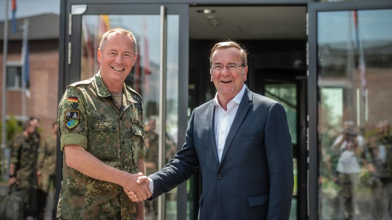 | Bộ trưởng Quốc phòng Đức Boris Pistorius (phải) và Tư lệnh Bộ Tư lệnh Không gian Đức, Michael Traut. |