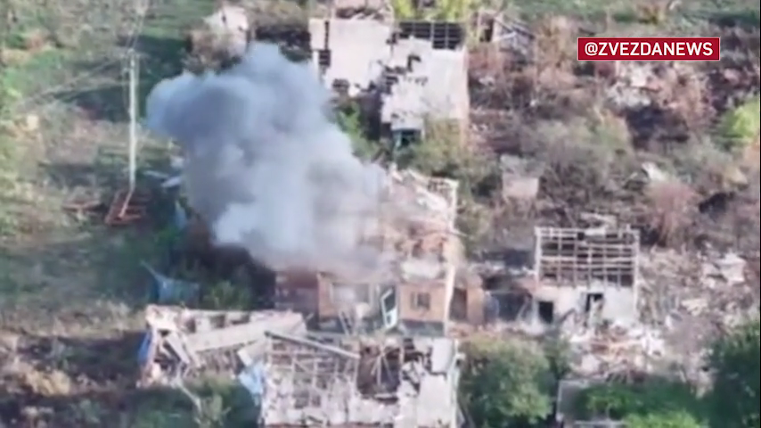 Video cho thấy hậu quả của các cuộc giao tranh. Những ngôi nhà bị phá hủy ở ngoại vi khu định cư được quay từ trên không; khói bốc lên tại các điểm bị đánh.