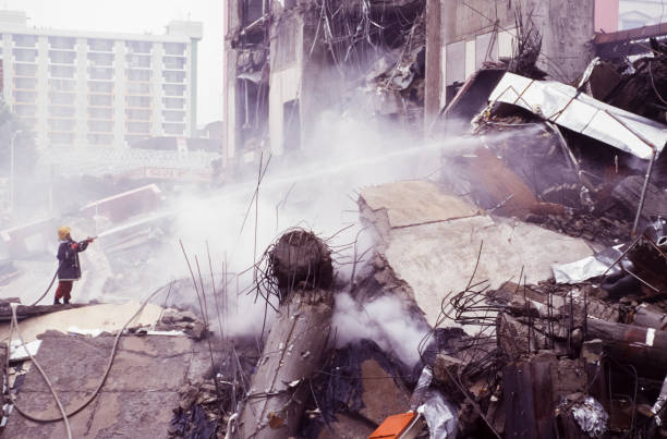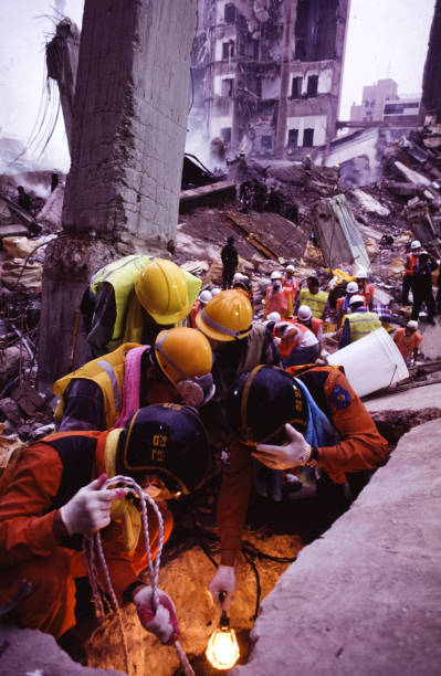 17h57, sau tiếng nổ lớn, dàn điều hòa không khí ở tầng trên cùng rơi xuống tầng 5 vốn đã nứt vỡ. Phản ứng dây chuyền sau đó khiến tòa nhà sụp đổ tan tành chỉ trong 20 giây. Ước tính ít nhất 1.500 người bị chôn vùi.
