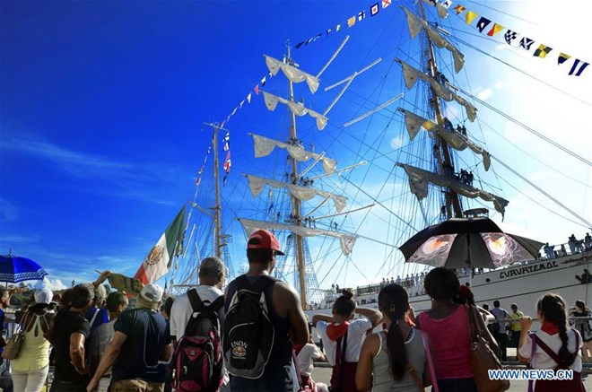 Tàu Cuauhtemoc của Hải quân Mexico cập cảng Havana trong chuyến thăm hữu nghị ngày 8.9.2018. Ảnh: Xinhua