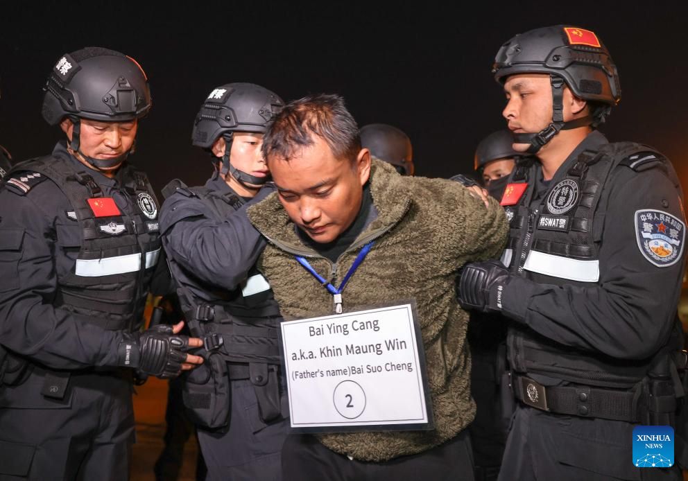 Cảnh sát Mynamar bàn giao Bạch Ứng Xương - một thành viên gia tộc Bạch - cho cảnh sát Trung Quốc ngày 30.1.2024. Ảnh: Xinhua