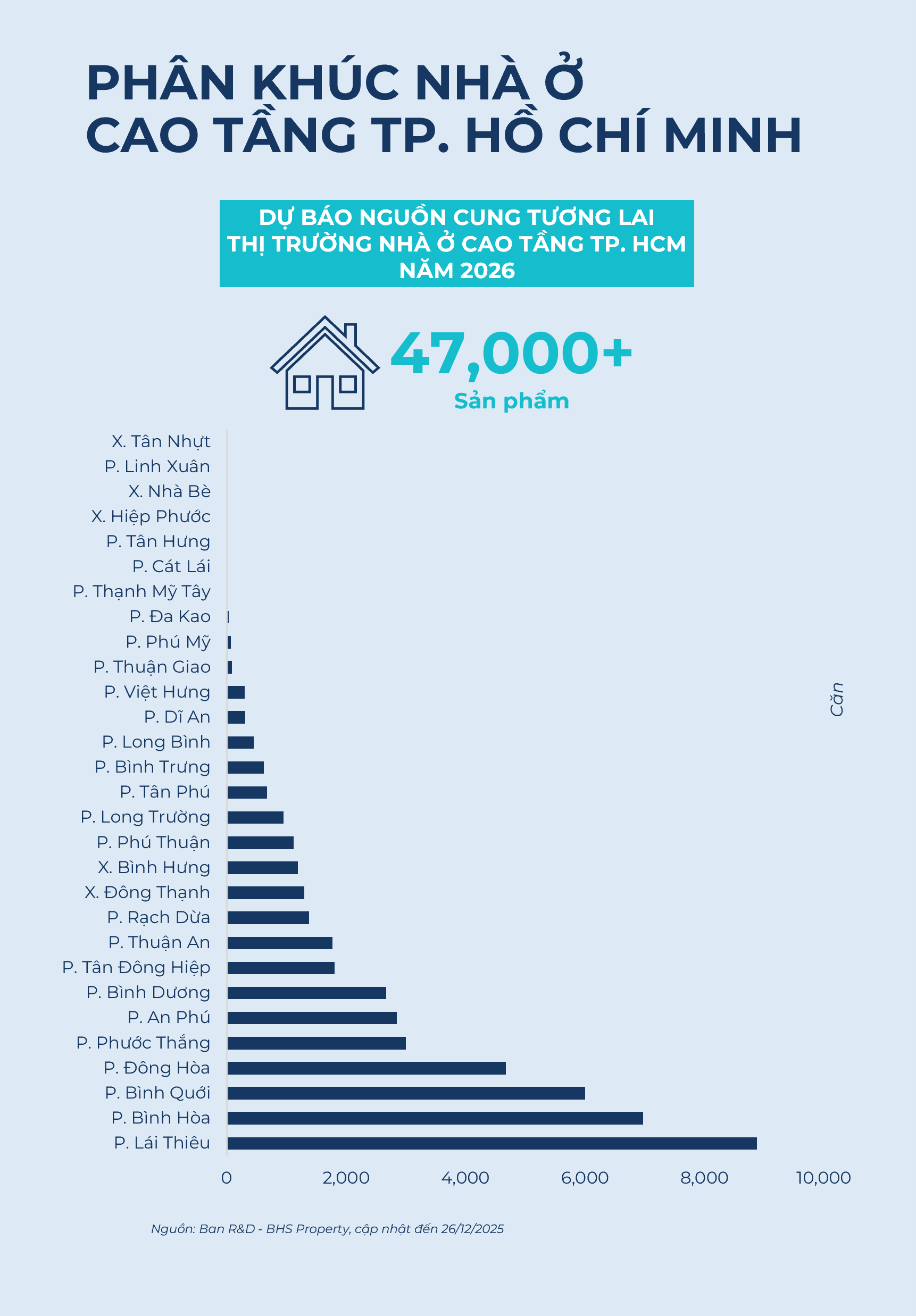 P. Lái Thiêu, Bình Hòa và Bình Quới sẽ là tâm điểm của thị trường BĐS TPHCM trong năm 2026. Các dự án nhà ở cao tầng tương lai tiêu biểu tại TP. Hồ Chí Minh bao gồm The Landmark (P. Bình Hòa, Phú Cường Group), Khải Hoàn Imperial (P. Lái Thiêu, Khải Hoàn Land), Bcons Center City (P. Đông Hòa, Bcons Group), Green Skyline (P. Đông Hòa, TBS Group), The Esme (P. Đông Hòa, Công ty TNHH Đầu tư Xây dựng Thiên Hà – Bảng Dương), The Emerald Boulevard (P. Thuận An, Lê Phong Group), Sunshine Sky City (P. Tân Phú, Sunshine Homes), cùng Masterise Thanh Đa (P. Bình Quới, Masterise Homes).