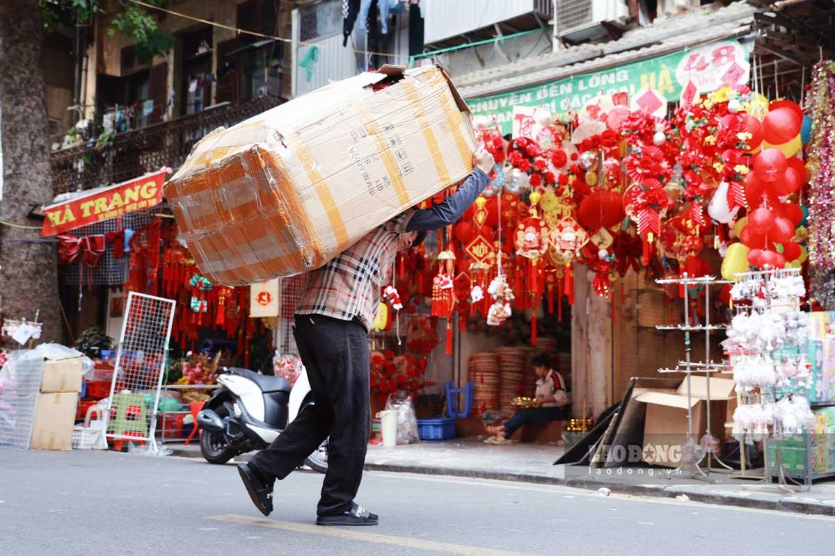 Anh Hoàng Tuân, tiểu thương trên phố Hàng Mã cho biết, ngay sau Noel anh phải thức đêm dọn đồ Giáng sinh, nhanh chóng bài trí các mặt hàng phục vụ nhu cầu trang trí Tết của người dân.
