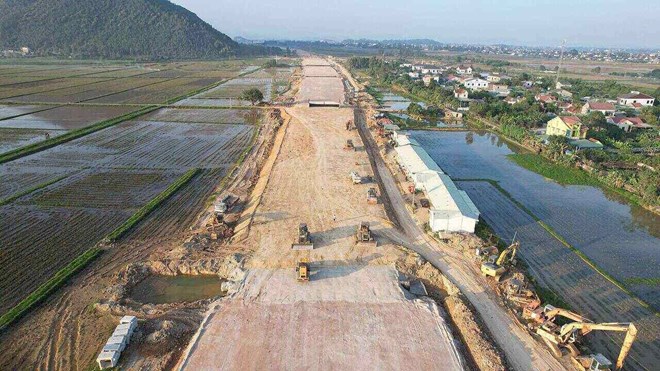 Dự án cao tốc Bắc Nam đoạn Diễn Châu - Bãi Vọt trên địa bàn tỉnh Nghệ An. Ảnh: Quang Đại