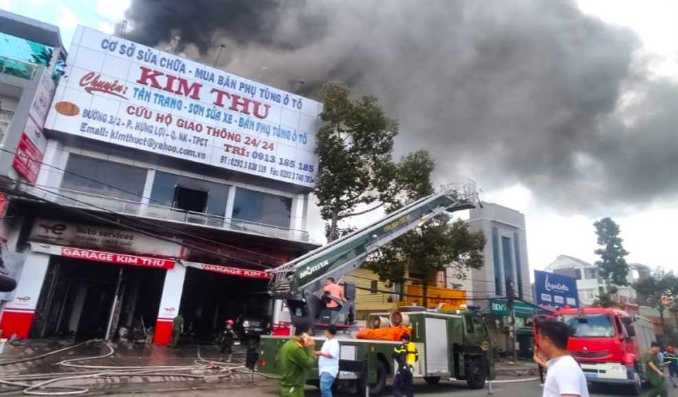 Cháy lớn tại cửa hàng sửa chữa, mua bán phụ tùng ô tô ngay trung tâm TP Cần Thơ.