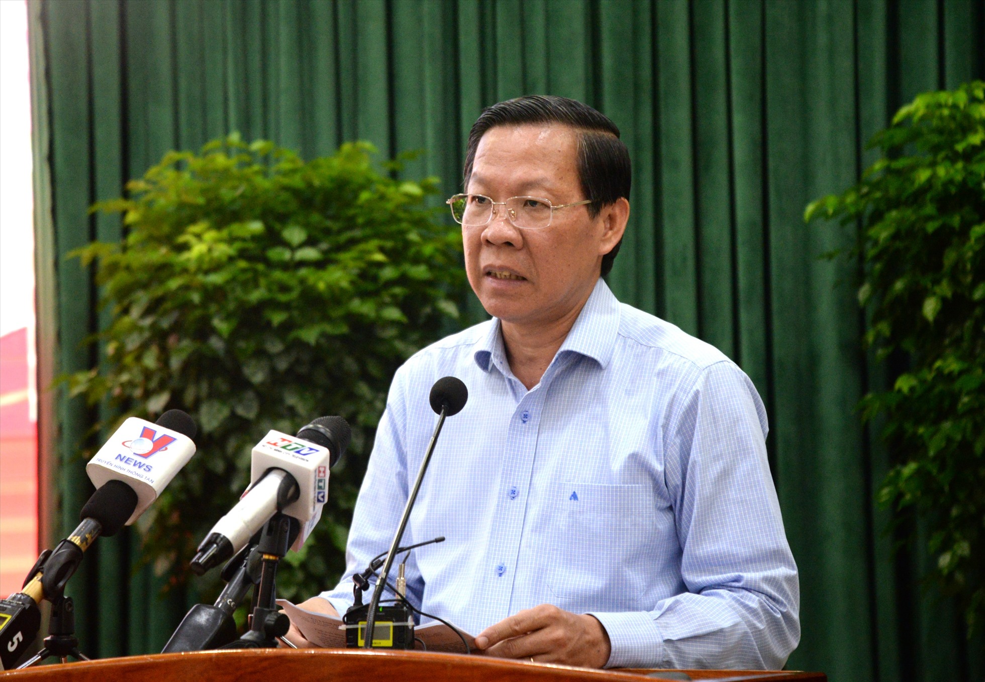 Chủ tịch UBND TP Hồ Chí Minh Phan Văn Mãi phát biểu tại hội nghị. Ảnh: Minh Quân