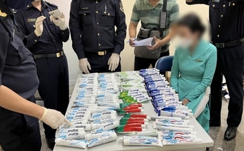 Ngoài ra, trước đó, vào ngày 17.3, Cục Hải quan TP Hồ Chí Minh phối hợp với Chi cục Hải quan sân bay Tân Sơn Nhất tổ chức họp báo thông tin về vụ 4 tiếp viên hàng không bị phát hiện xách 11,3kg thuốc lắc và ma túy tổng hợp trong các tuýp kem đánh răng từ Pháp về.