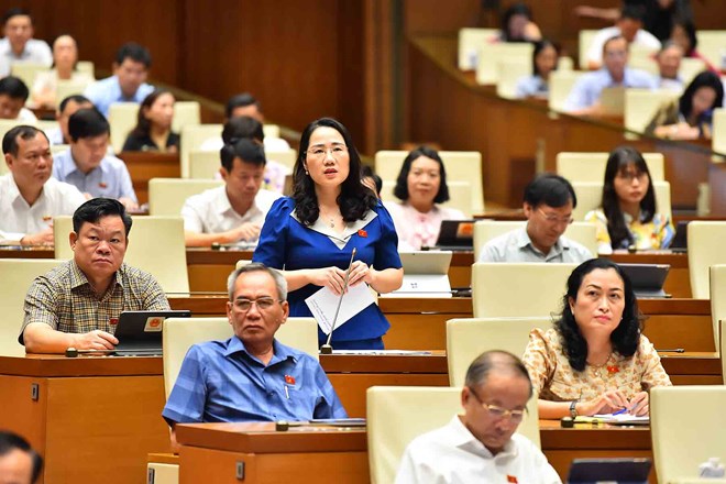 Đại biểu Nguyễn Thị Việt Nga (Đoàn Hải Dương) góp ý về nội dung Tòa án sơ thẩm chuyên biệt (mục 5, chương IV của dự thảo luật).