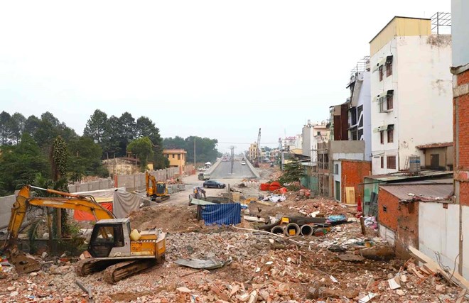 Đoạn cuối dự án, từ đường Nguyễn Đức Thuận đến Cộng Hòa, gần hoàn thành nhưng chưa thể thông xe do vướng mặt bằng. Ảnh: Minh Quân