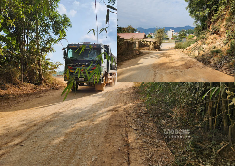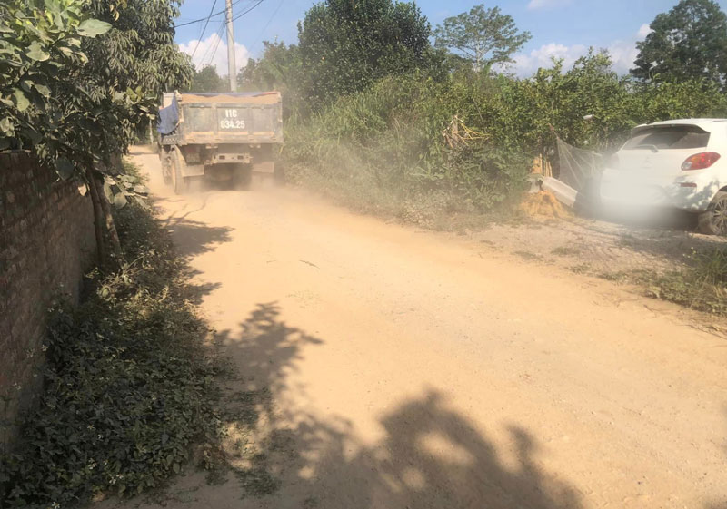 Bụi bặm cuộn lên mỗi lần xe tải chạy qua. Ảnh: Tân Văn.