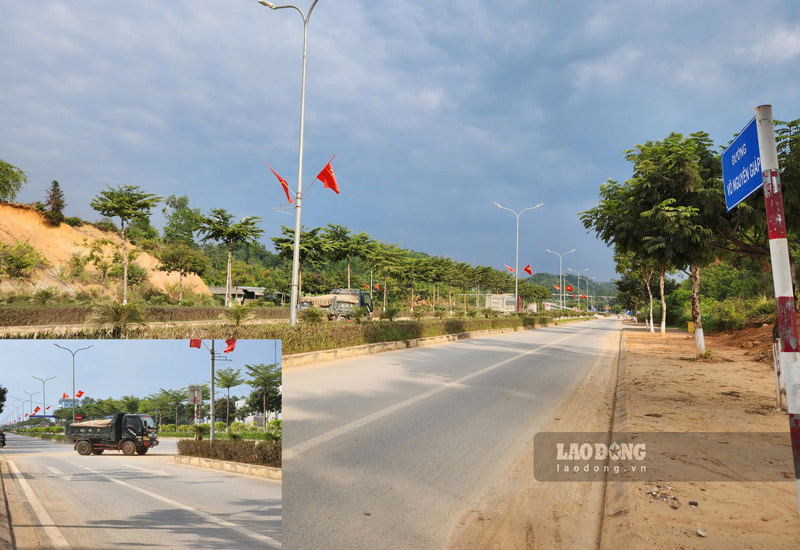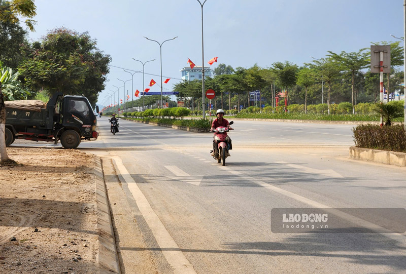 Tại khu vực đường Võ Nguyên Giáp (đường 58) - trục đường chính của thành phố Cao Bằng, đất cát vương vãi khắp mặt đường. Mỗi khi xe chạy qua, bụi đất đỏ lại cuộn lên, ảnh hưởng đến người tham gia giao thông.