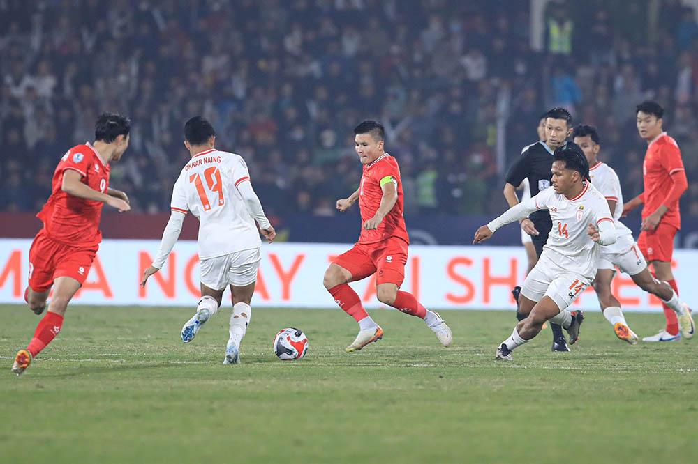 Xuân Son đã gây nhiều khó khăn cho hàng thủ Myanmar ngay từ những phút đầu trận.