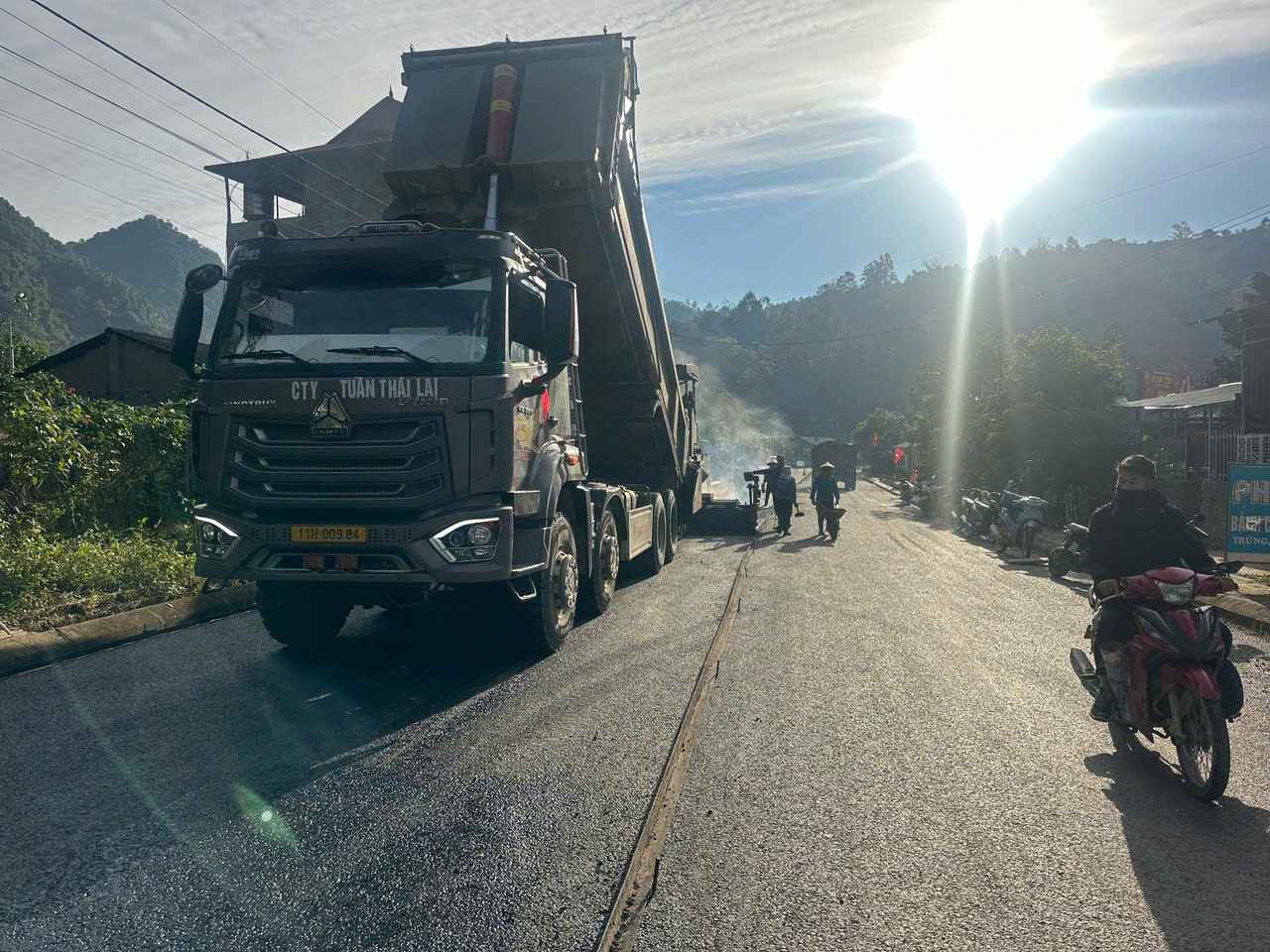 Đứng tại công trường, có thể thấy con đường mới đang dần hiện ra với hình hài hoàn chỉnh, từng đoạn nhựa đen bóng nối dài qua sườn núi.