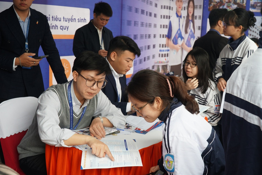 Học sinh tham gia tư vấn tuyển sinh đại học, cao đẳng. Ảnh: Hồ Lài