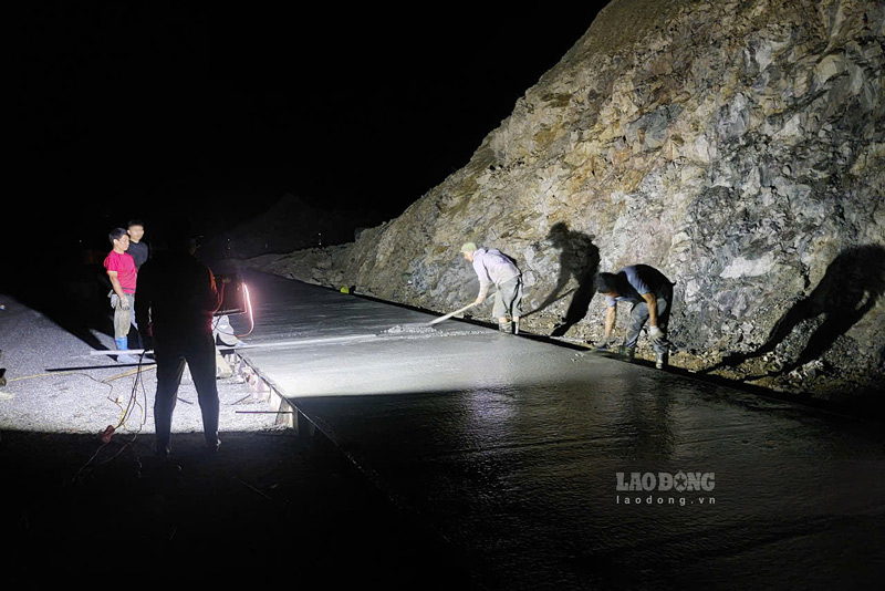 Những ngày này, khi thời tiết khô ráo, đơn vị thường tranh thủ tăng ca đến đêm để bù lại cho những ngày mưa gió kéo dài không thể thi công.
