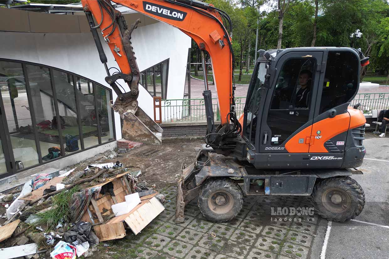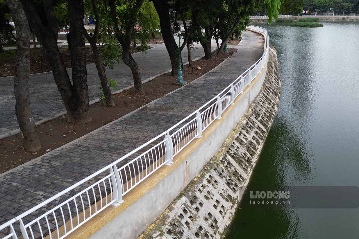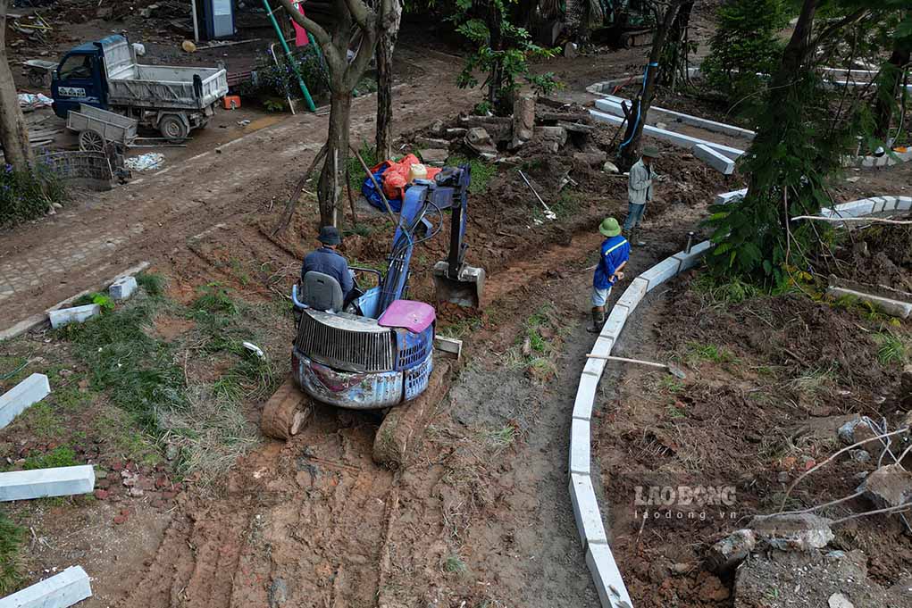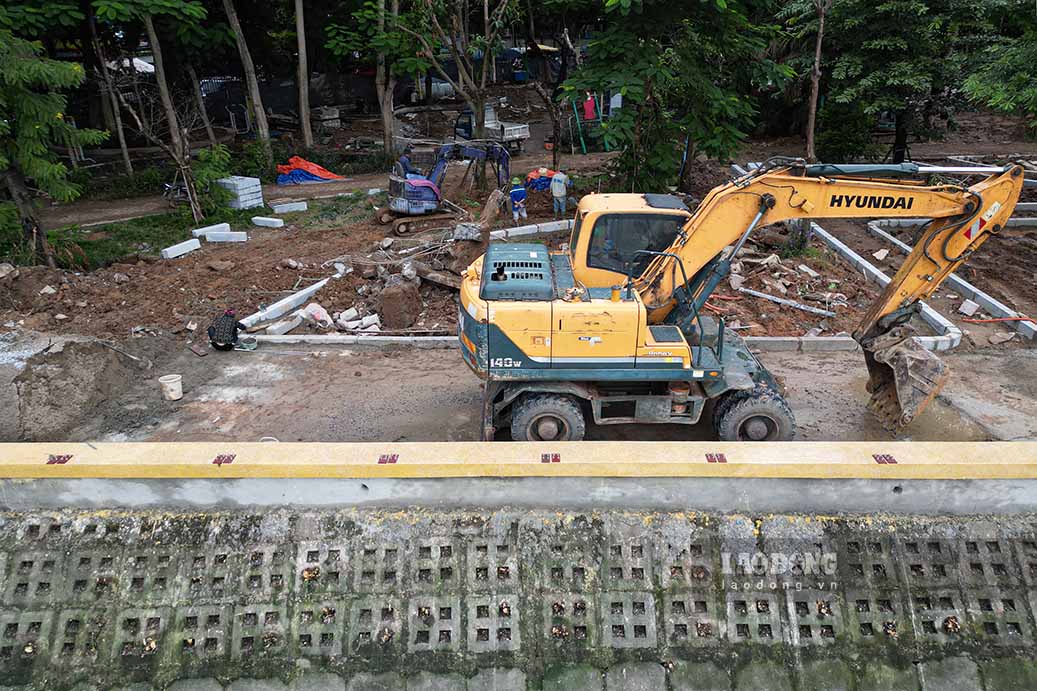 Hiện nhà thầu đang tập trung máy móc, nhân công cải tạo các hạng mục kè sụt lún, đổ đất, san nền khu vực trũng thấp, tạo lối đi và không gian cho người đi bộ tập thể dục.