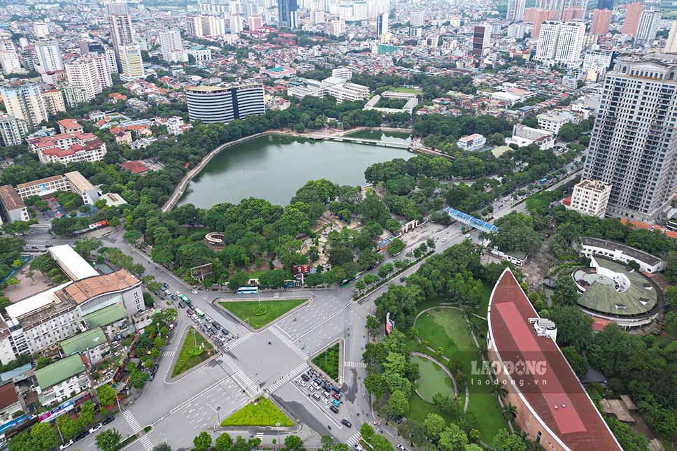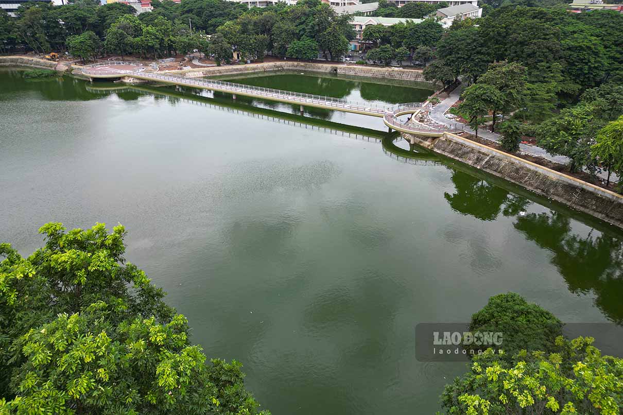 Trong khi đó, tại Công viên Nghĩa Đô, không khí thi công cũng diễn ra khẩn trương. Điểm nhấn của dự án là cây cầu đi bộ bắc qua hồ điều hòa với thiết kế mô phỏng hình dáng cây đàn, hứa hẹn trở thành công trình kiến trúc độc đáo, thu hút người dân và du khách.