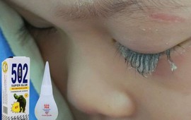 Bé trai 3 tuổi bị keo 502 bắn vào mắt