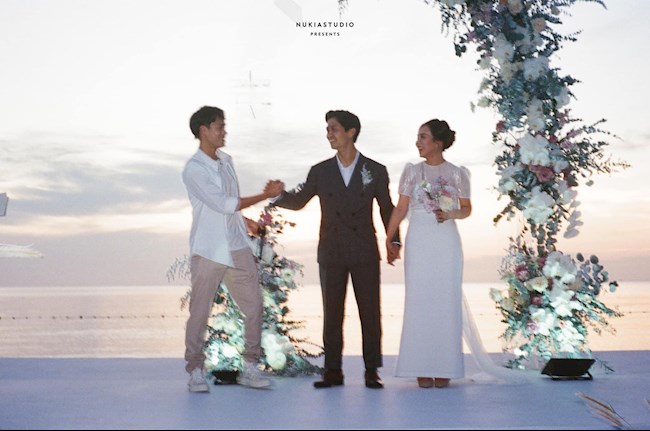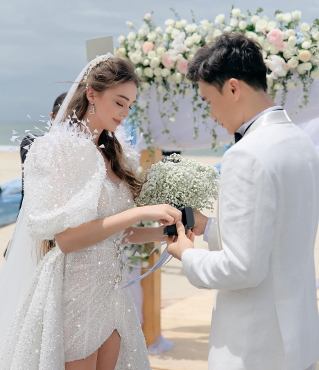 Tiếp đó là tiệc cưới tổ chức tại Phú Quốc cho bạn bè của cô dâu chú rể. Hôn lễ bãi biển với sự góp mặt của khách mời toàn người trẻ tuổi trong không gian đẹp tuyệt đã khiến dân mạng vô cùng ấn tượng.