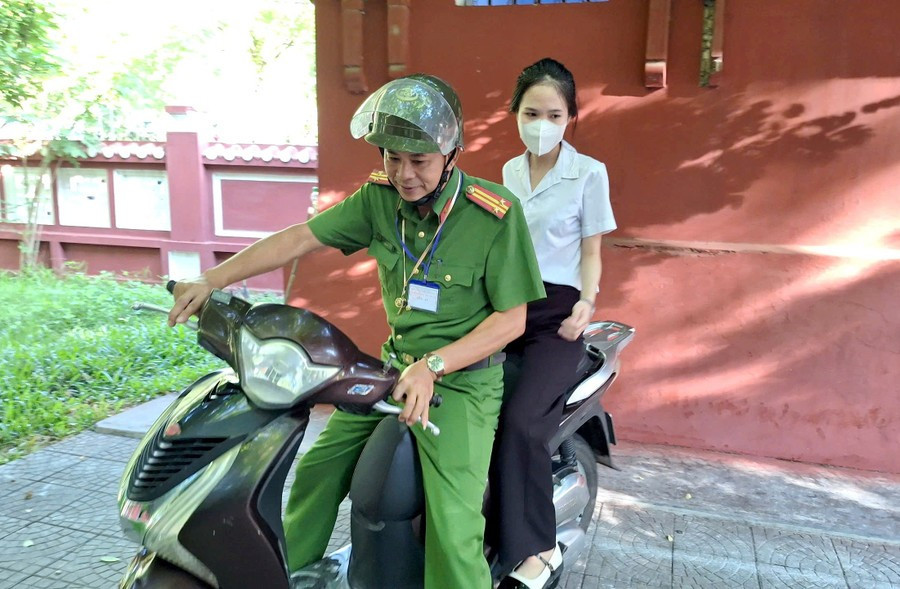 Nữ thí sinh bị nhầm điểm thi tại Trường THPT chuyên Quốc Học - Huế, được Công an chở qua điểm thi Trường THPT Hai Bà Trưng khi giờ phát đề cận kề.