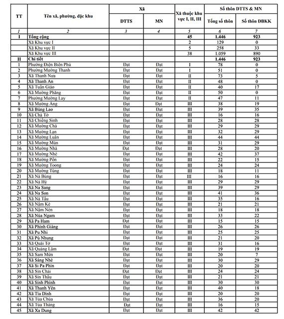 Điện Biên - UBND tỉnh vừa công bố danh sách 45 xã vùng đồng bào dân tộc thiểu số và miền núi.