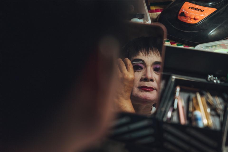 Hậu trường của Đoàn nghệ thuật cải lương Sông Hương là những căn phòng nhỏ được phân chia bằng rèm mỏng để các nghệ sĩ có thể sinh hoạt.